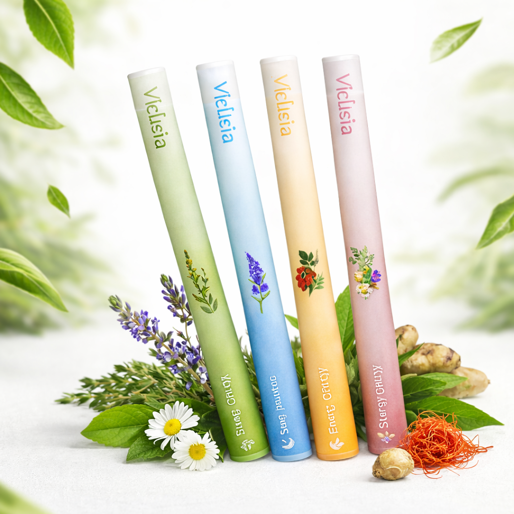 Velisia’s 4-in-1 Herbal Diffuser Sticks offer a smoke-free, nicotine-free way to enjoy calm, clarity, or gentle energy throughout the day.