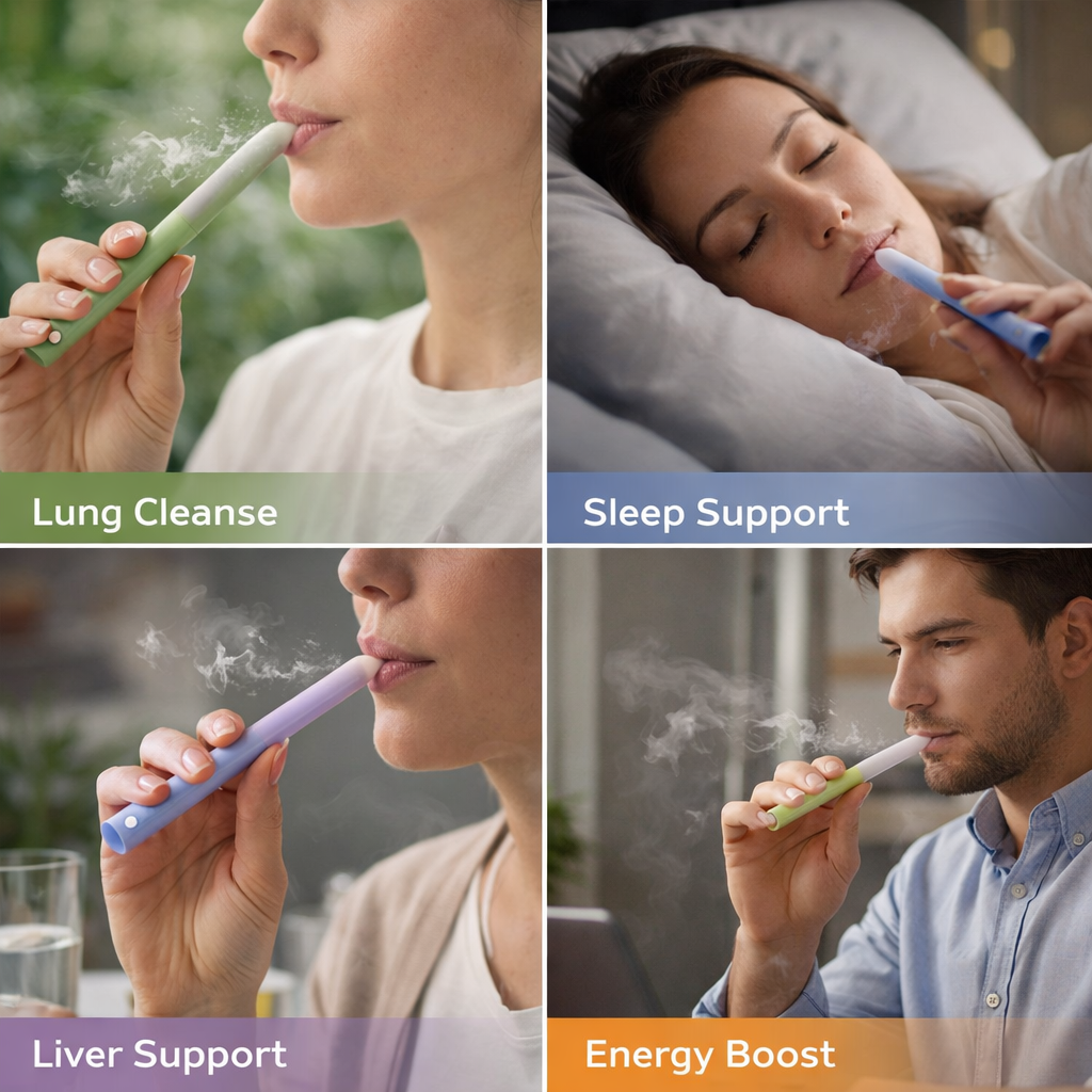 Each stick features a functional herbal aroma for different needs like relaxation, focus, energy, or stress relief, offering a simple, portable experience without jitters or crashes.